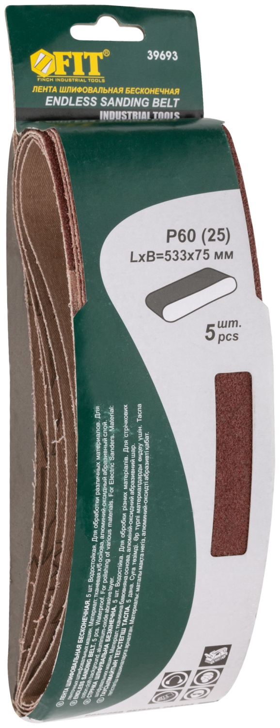 Ленты шлифовальные бесконечные, водостойкие, тканевая основа, 75 х 533 мм, 5 шт. Р 60