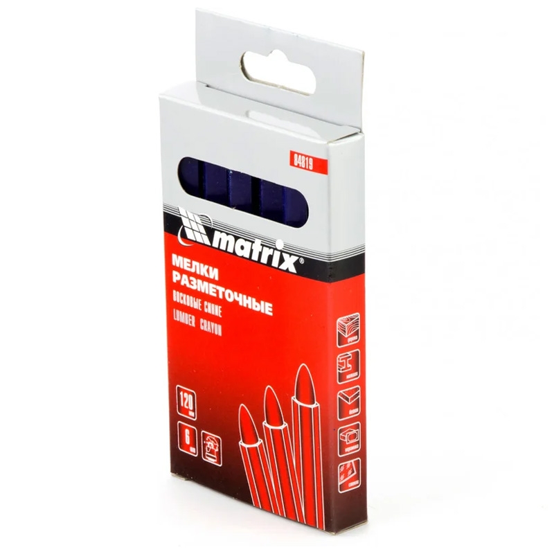 Мелки разметочные 120 мм восковые, синие 6 шт, Matrix