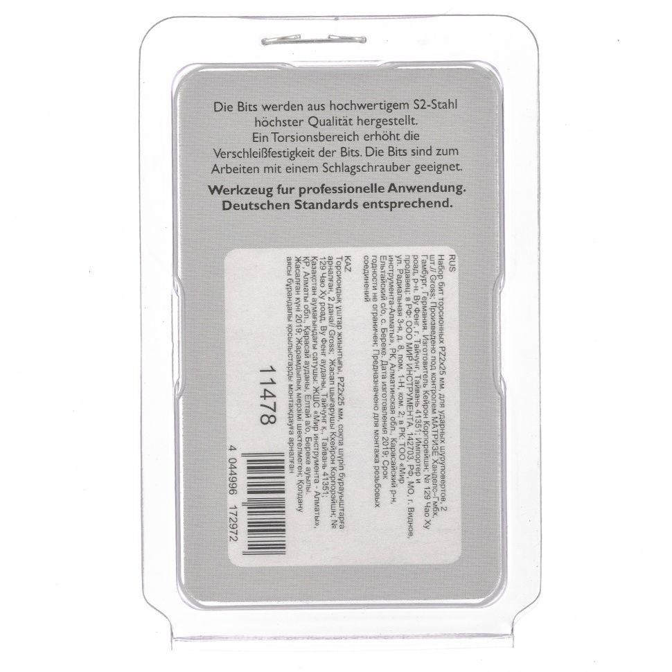 Набор торсионных бит PZ2x25 мм Gross арт. 11478 предназначен для монтажа и демонтажа резьбовых соединений с помощью ударного шуруповерта. Он незаменим в строительных, слесарных и монтажных работах, в автосервисах, при проведении ремонта в доме и т.д. Торсионная зона способна пружинить, за счет чего она частично амортизирует тангенциальный удар от шуруповерта. Такое решение позволяет равномерно распределить нагрузку по бите и избежать поломки шлица. Торсионная зона позволяет работать ударным шуруповертом даже с особо твердыми поверхностями без риска поломки бит. Дополнительные выступы между гранями защищают шлиц PZ от выскальзывания из головки крепежа и поломки независимо от усилий мастера. Высококачественный материал изготовления — японская легированная сталь S2 обеспечивает устойчивость бит к износу и увеличивает их ресурс. Закалка до твердости 58-60 HRC повысила прочность и сопротивляемость бит к деформации. Шлицы бит намагничены, поэтому крепеж не выпадет.