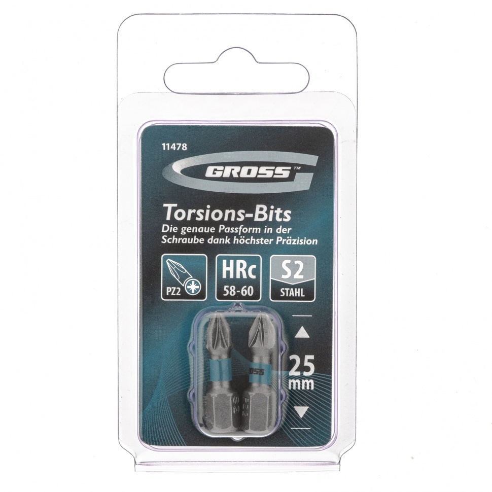 Набор бит торсионных PZ2х25 мм, для ударн.шуроповертов 2шт Gross