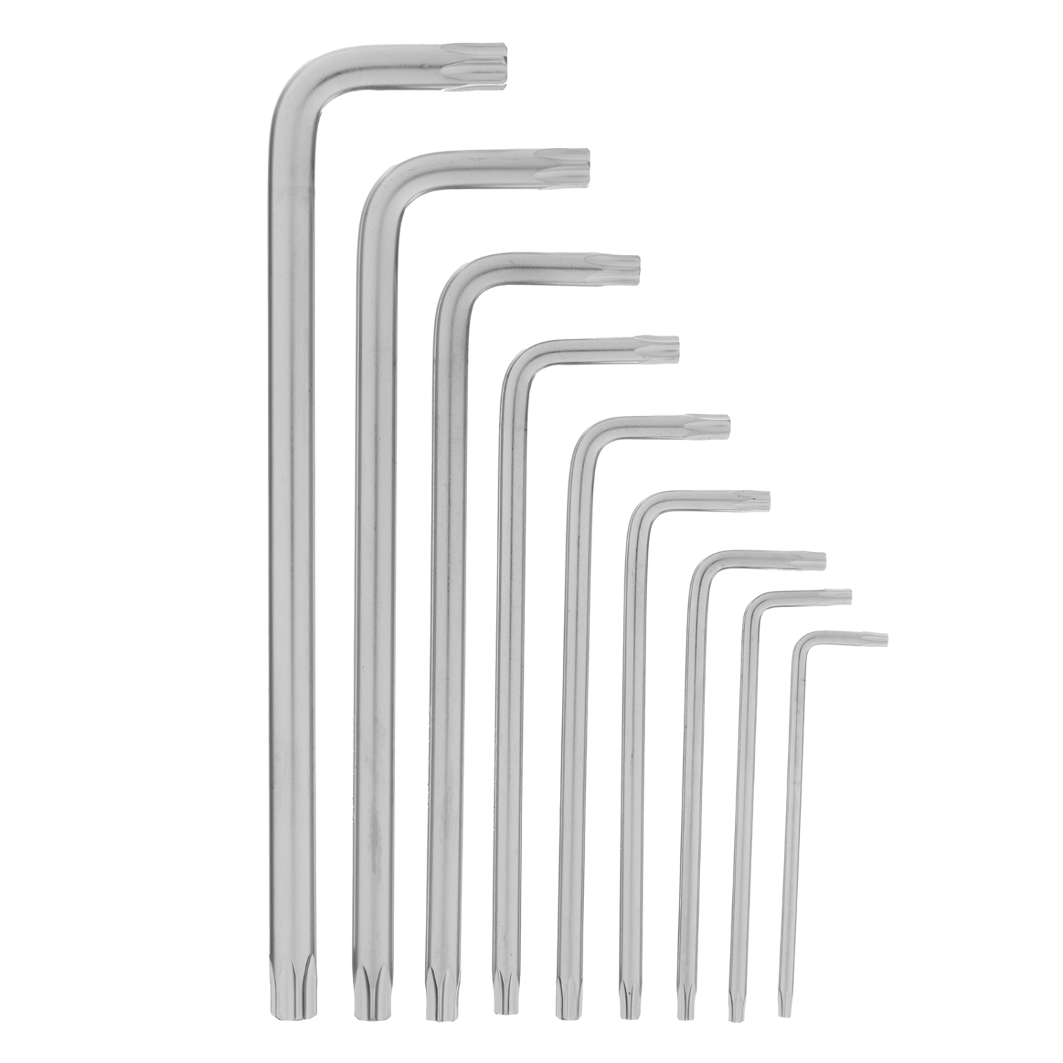 Набор Matrix 12313 в чехле включает 9 удлиненных сатинированных имбусовых ключей размером Т10-Т50, из стали CrV, и используется для монтажа и демонтажа крепежных элементов с профилем TORX-TORX Tampered. Набор пригодится для домашнего применения и профессиональных работ по ремонту бытовой и электронной техники. Ключи Г-образной формы удобны для работы с большим усилием и в труднодоступных местах.