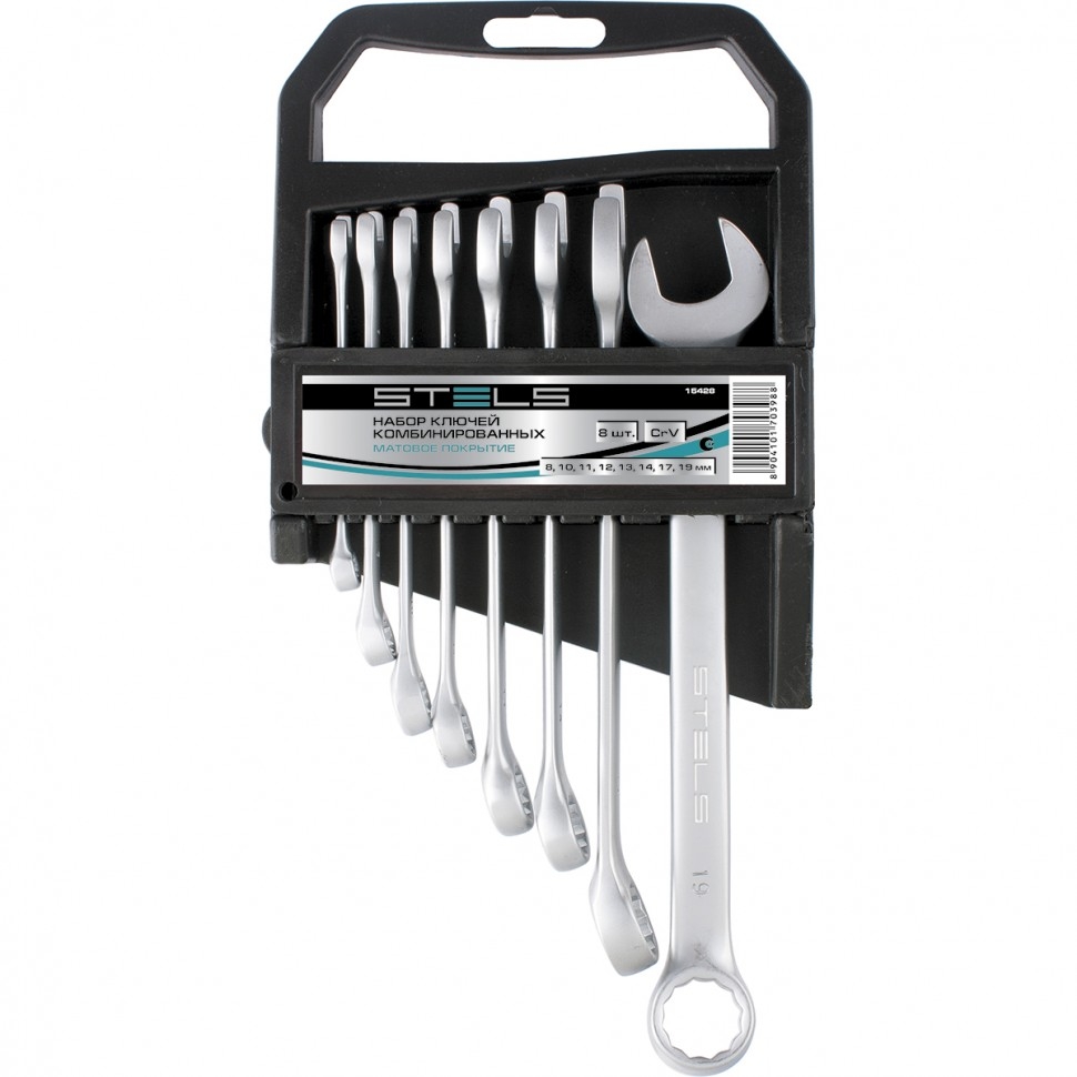 Набор ключей комбинированных 8-19 мм 8 шт CrV матовый хром Stels