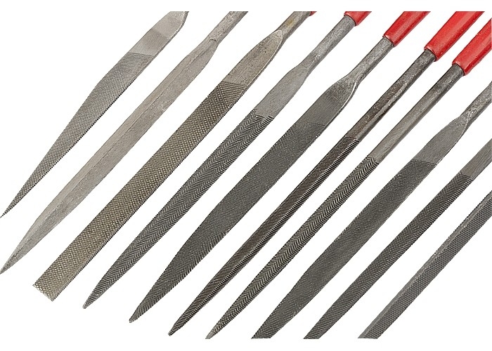 Набор надфилей Matrix 15818 из 10 шт., 160 x 4 мм, с обрезиненными рукоятками, предназначен для опиливания поверхностей из древесины, стекла, керамики и других материалов. В комплекте надфили с разными профилями, что позволяет обрабатывать пазы, отверстия, внутренние углы, детали с округлыми и рельефными поверхностями. Инструменты необходимы в слесарной, столярной мастерской, пригодятся для занятий моделированием. Преимущества Надфили изготовлены из конструкционной стали, поэтому долго сохраняют свои рабочие качества. Каждый надфиль имеет обрезиненную рукоятку, которая не выскальзывает из рук, что увеличивает комфорт во время работы. На полотно каждого надфиля нанесена двойная перекрестная насечка, что повышает качество обработки и позволяет использовать инструменты с любых сторон. Рукоятки красного цвета хорошо заметны, что облегчает поиск надфилей среди других инструментов. Набор упакован в чехол, удобный для хранения и транспортировки.