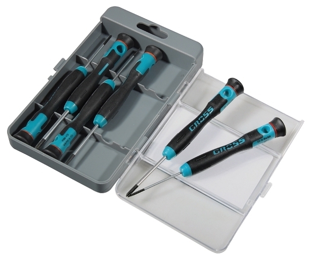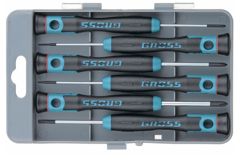 Набор отверток для точной механики 6 шт, CrMo, металл, двухкомпонентная рукоятка, Gross