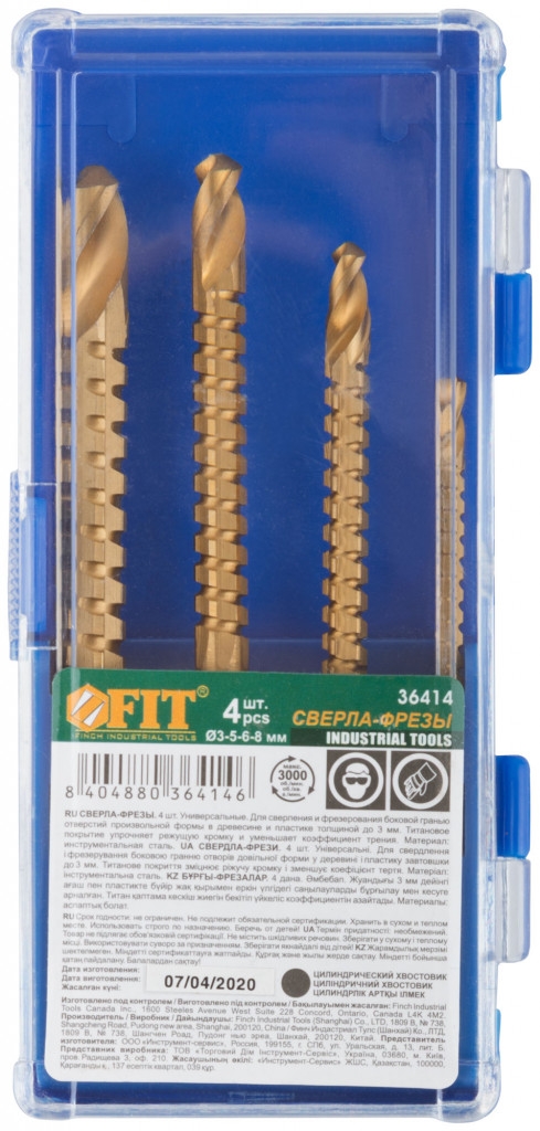 Набор сверл-фрез 3.5.6.8 мм универс.титан.покр. 4 шт.