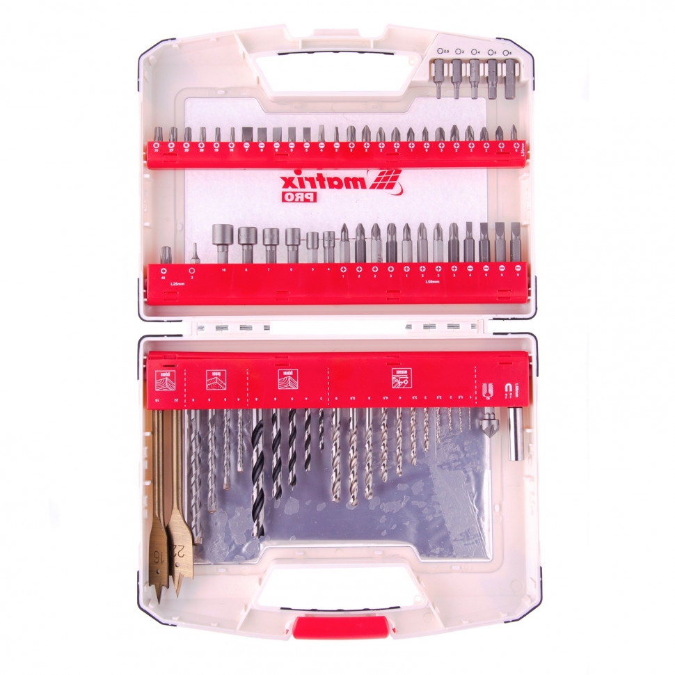 Набор сверл комбинир.. мет.1-6мм.бетон 4-8мм.дер3-8мм перки.биты 44шт..адаптер.голов.6шт 75пр.Matrix