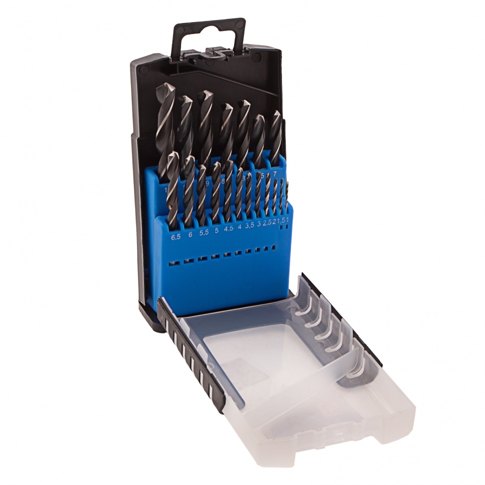 Набор сверл по металлу Барс 72372 включает 19 оснасток диаметром 1-10 мм (через 0,5 мм) из прокатанной стали P6M5, с цилиндрическим хвостовиком, в пластиковом боксе, и предназначен для сверления отверстий в металле и жестком пластике. В наборе сверла самых востребованных размеров, которые будут полезны в слесарной мастерской, во время ремонта, а также дома, в гараже или на даче. Сверла изготовлены из быстрорежущей стали, легированной вольфрамом и молибденом, поэтому устойчивы к слому под воздействием динамических нагрузок и высокой температуры.