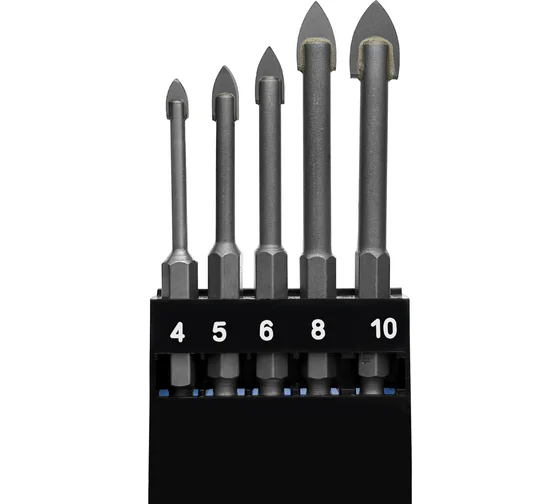 В наборе 5 сверл диаметром от 4 до 10мм.