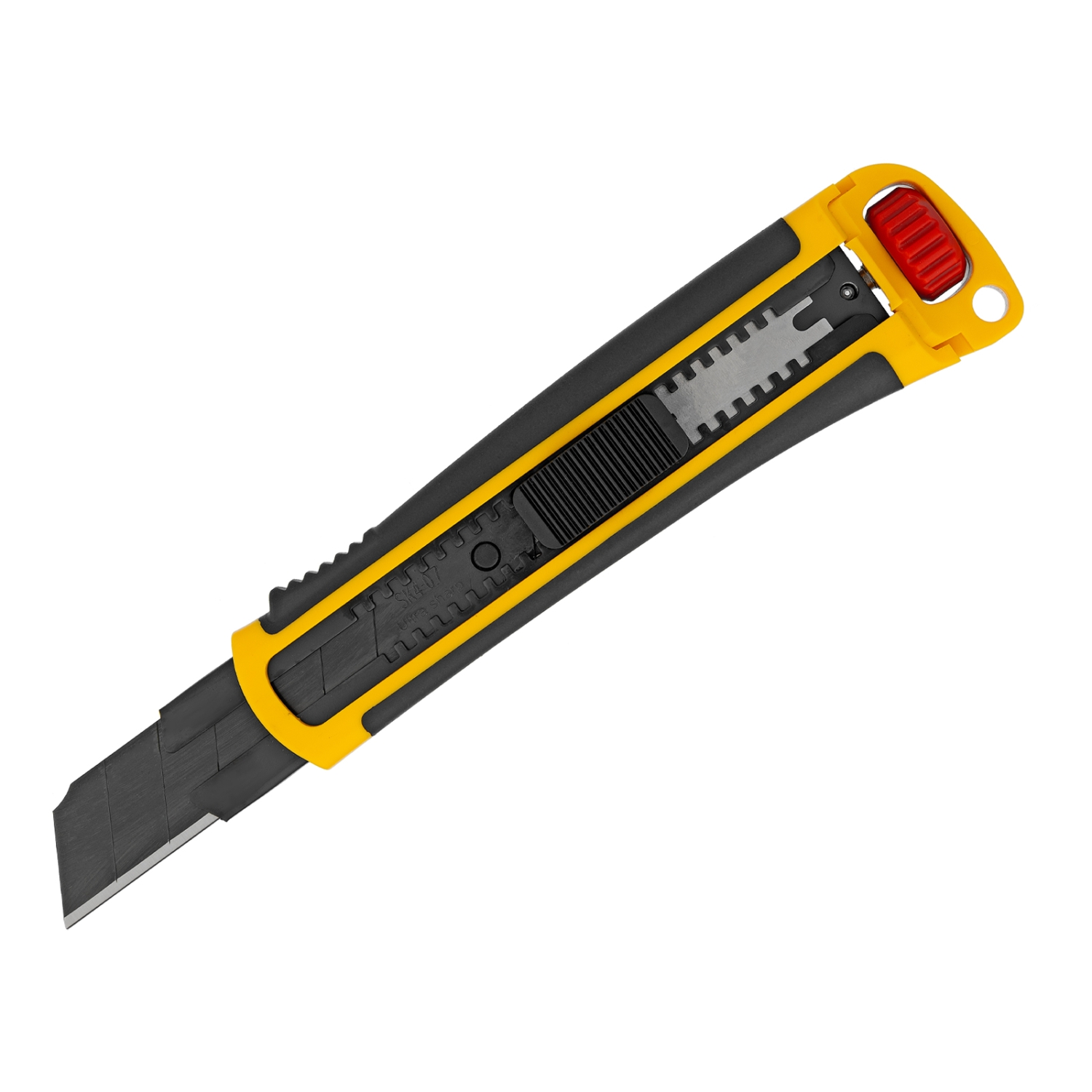 Нож 25 мм сменное лезвие SK4, корпус ABS+TPR торцевой зажим Denzel