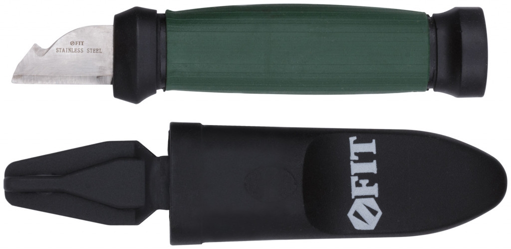 Для снятия изоляции с проводов, прочих работ. Лезвие с изогнутой обратной частью с двух сторонней заточкой. Материал: лезвие из нержавеющей стали, пластиковая обрезиненная ручка, пластиковые ножны.