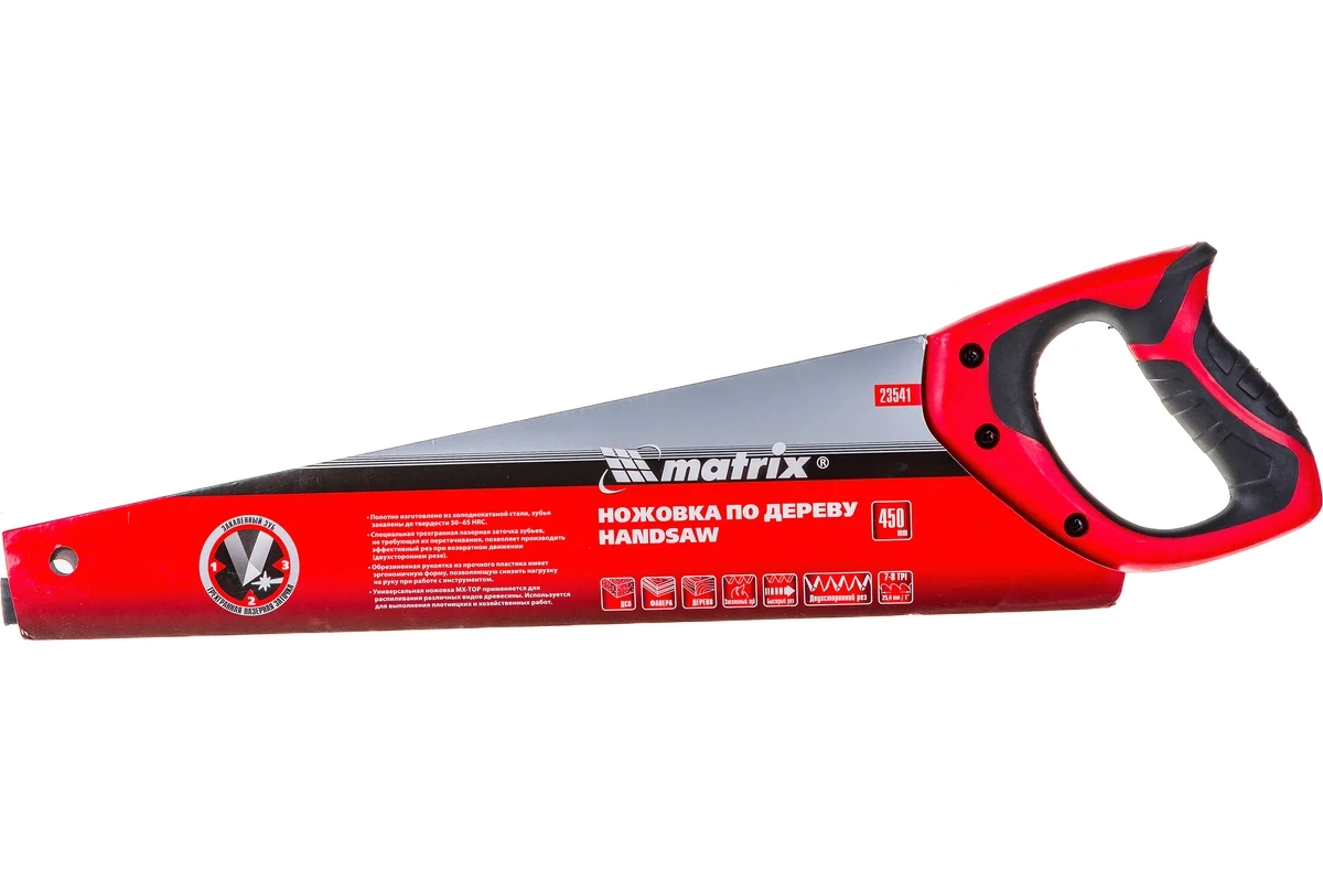 Ножовка по дереву, двухкомп.рук.,зуб 3D, каленый зуб 7-8 TPI 450мм Matrix