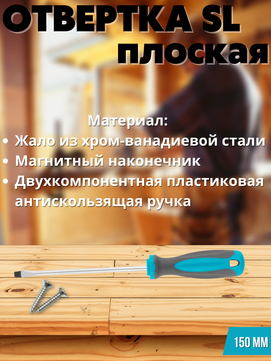 Материал: жало из хром-ванадиевой стали, магнитный наконечник, двухкомпонентная пластиковая антискользящая ручка.