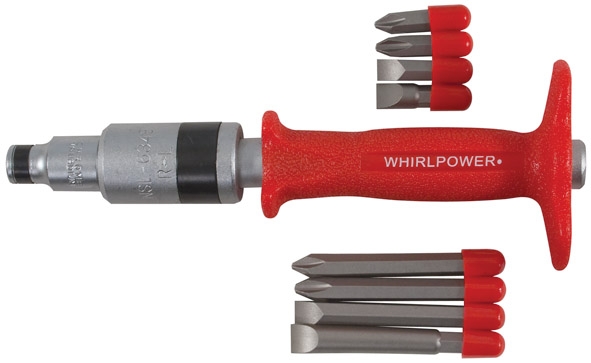Отвертка ударная, стальная, с резиновым фартуком–защитой рук. В наборе биты из S2 стали (36 мм: PH2; PH3; SL8; SL10; 80мм: PH2; PH3; SL8; SL10), переходник для воротка 1/2" на биту 5/16". Упаковка: блистер.