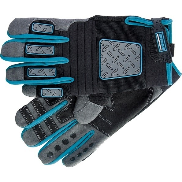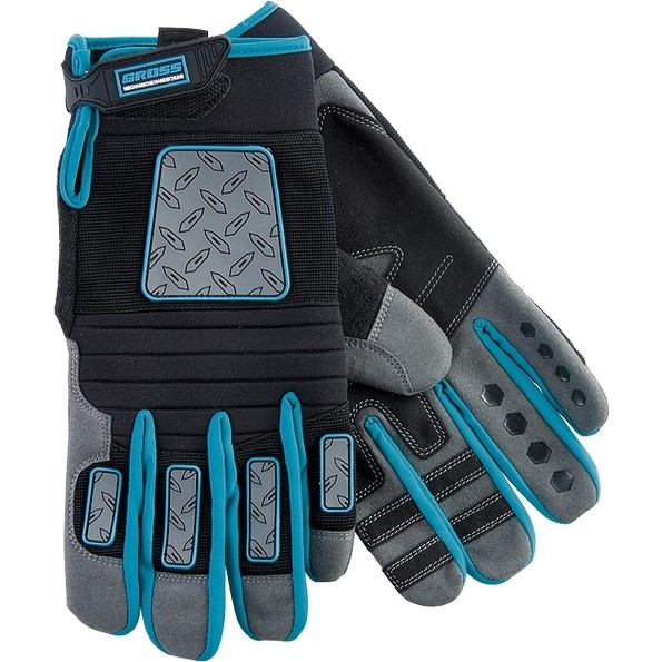 Универсальные комбинированные перчатки Gross DELUXE 90333 размера L защищают руки от механических воздействий и образования мозолей. Анатомически скроенные перчатки плотно облегают кисти рук и не сковывают движения. Силиконовые накладки на внутренней стороне пальцев препятствуют выскальзыванию инструментов и снаряжения из рук. Перчатки пригодятся при работе с ручным и электрическим инструментом, занятиях мото- и велоспортом, а также при участии в спортивных высокотравматичных играх.Износостойкость — благодаря прокладкам на пальцах и формованной накладке на ладонной части перчатки защищены от протирания. Возможность использования в холодный период — на внешней стороне пальцев находится резиновое покрытие, обеспечивающее термическую защиту. Надежная фиксация — манжеты снабжены лентами-застежками velcro, благодаря которым изделия не сползают с кистей рук. Защита от натирания — при изготовлении перчаток использованы специальные швы Ergonomic Cut, которые не повреждают кожу.