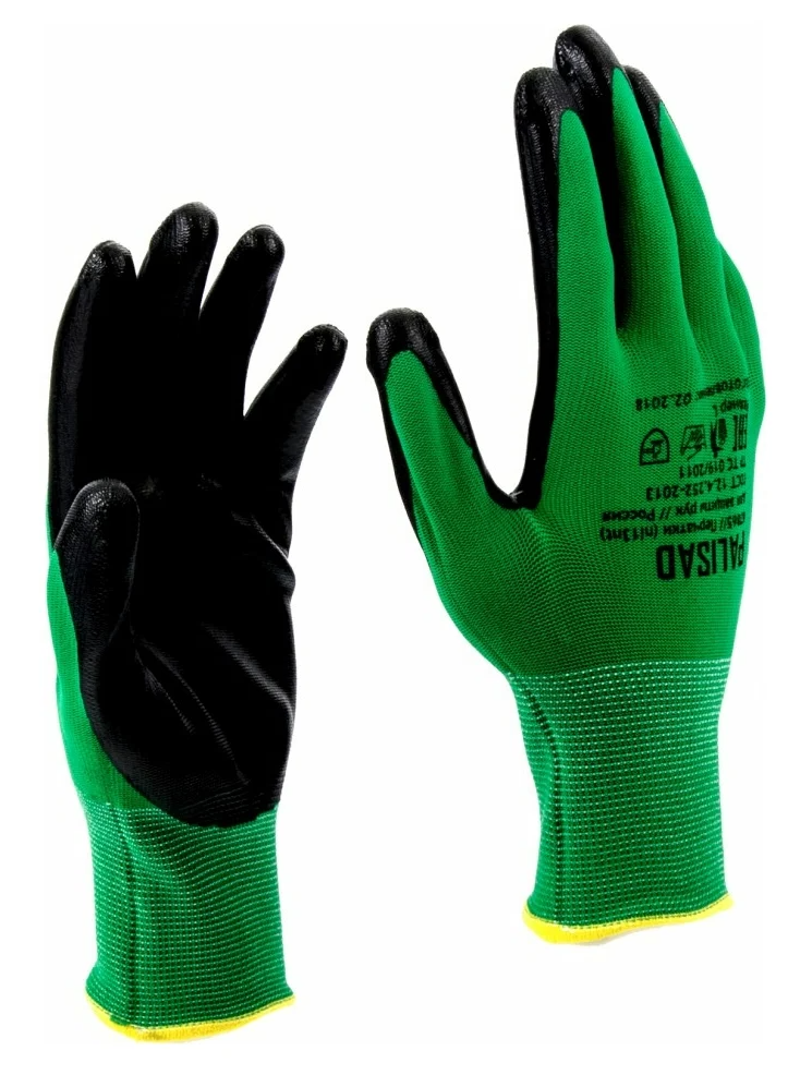 Перчатки полиэфирные с черным нитрильным покрытием 15 класс вязки размер L Palisad