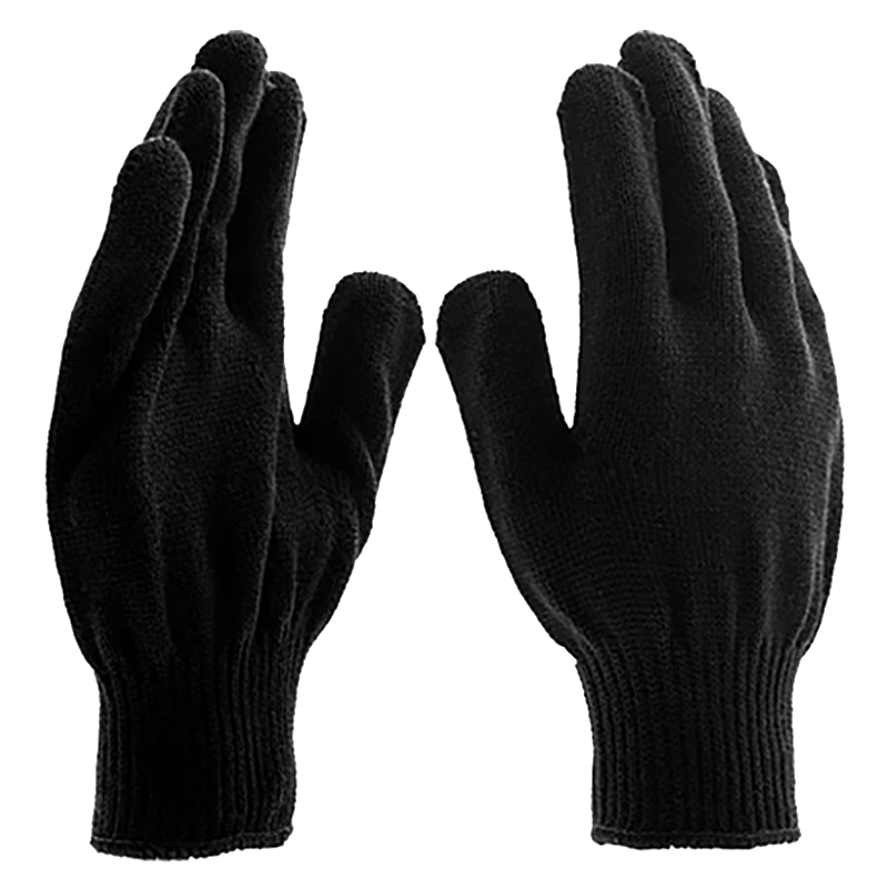 Перчатки черного цвета, из акрила, обработанные оверлоком, используют во время строительных и монтажных работ. Они надежно защищают руки от холода, а также от травм и загрязнений. Благодаря своей эластичности перчатки легко надеваются и не стесняют движения пальцев по время работы.