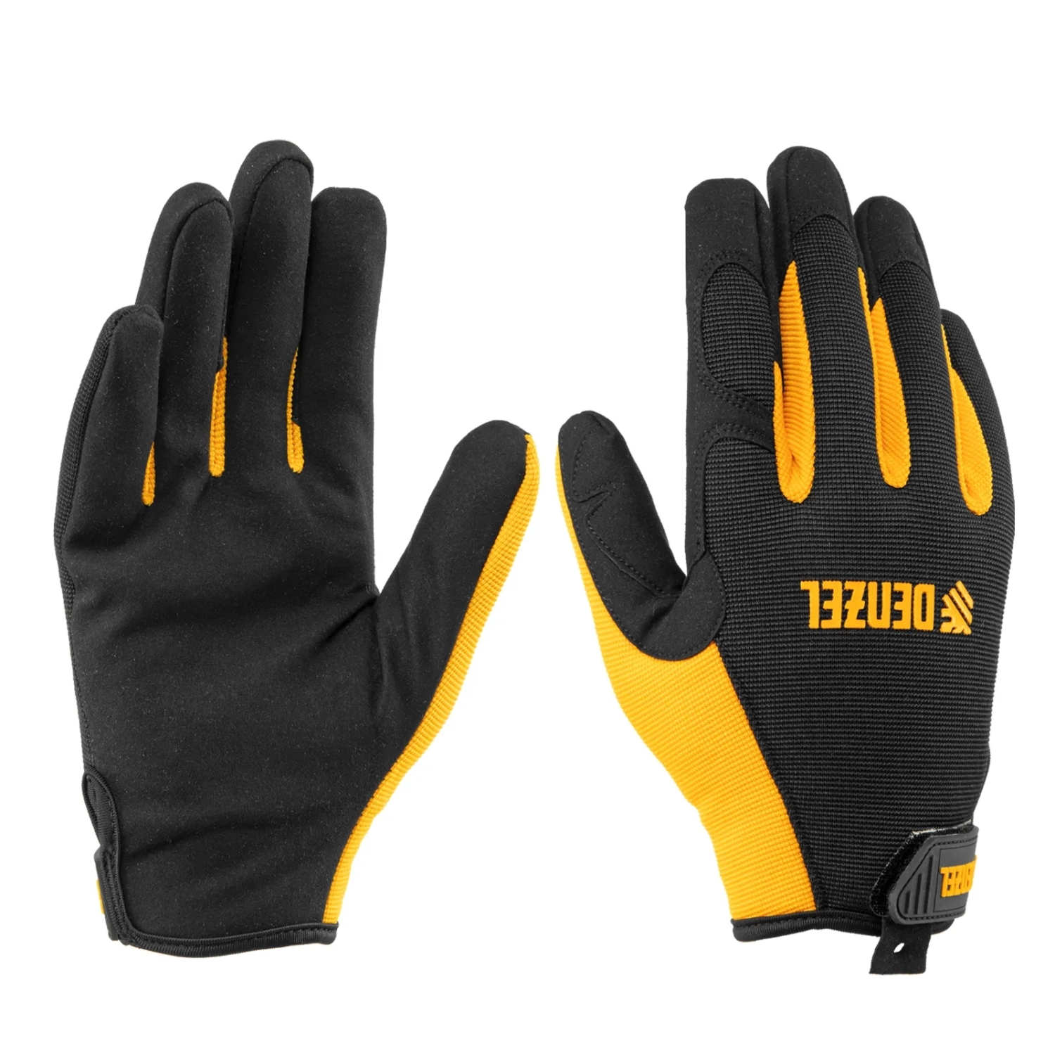 Универсальные перчатки Denzel 67994 размера 10, с манжетами на «липучке», используются для работы со слесарным инструментом. Надежно защищают кожу рук от царапин и мозолей. Пригодятся в мастерской, дома или в гараже. Износостойкость — перчатки устойчивы к истиранию благодаря прочному материалу (сочетание полиэстера, спандекса, полиамида, нейлона, полиуретана и поливинилхлорида). Плотная посадка — манжеты на «липучках» обеспечивают надежную фиксацию. Комфортная эксплуатация — перчатки анатомического кроя плотно облегают кисти рук и не стесняют движения пальцев.