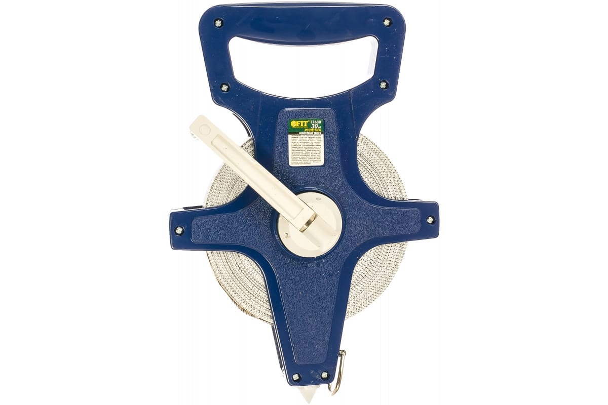 Рулетка землемерная, фибергласовая лента, синий открытый корпус 30м