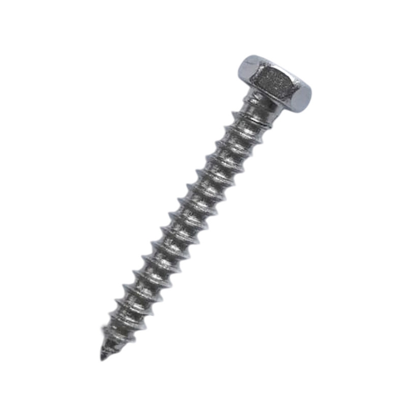 Самонарезающий винт с шестигранной головкой DIN 7976 из нержавеющей стали позиционируется как саморез для листового металла и используется для работы с мягкой сталью и алюминием. Его целесообразно использовать в тех случаях, когда требуется приложить более высокое усилие затягивания и допускается выступающая шляпка крепежа. Шуруп-саморез по металлу имеет стержень с полной мелкой резьбой, который при ввинчивании в низкоуглеродистую сталь и алюминиевые сплавы нарезает канавку в установочном отверстии без деформации собственной резьбы. Острие на конце избавляет от необходимости сверления стали толщиной до 1,0 мм. Внешний шестигранник обеспечивает увеличенный момент затяжки и исключает проскальзывание инструмента при установке. Изготовлен из немагнитной аустенитной стали А2, которая сочетает в себе высокую прочность и пластичность. Нержавеющие саморезы, выполненные из данного материала, рассчитаны на длительный срок службы без следов коррозии во влажной среде.