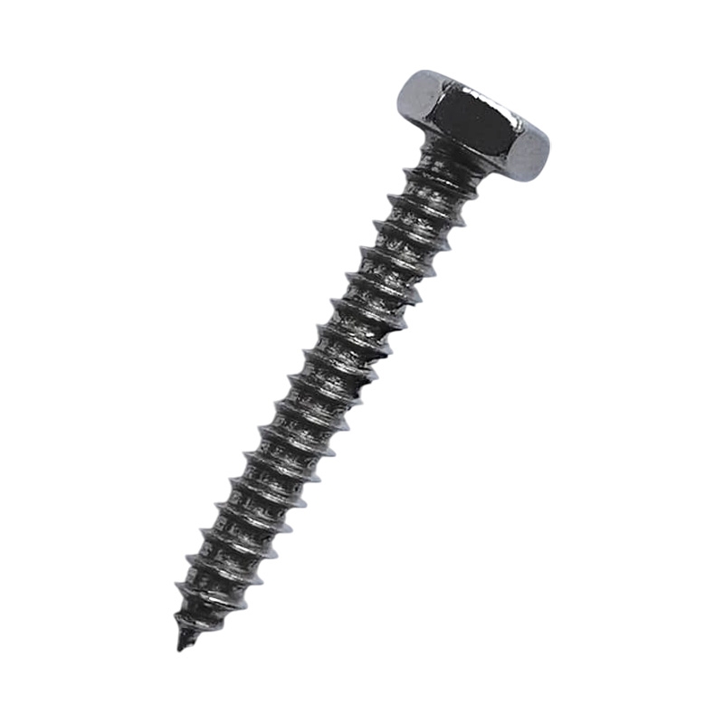 Самонарезающий винт с шестигранной головкой DIN 7976 из нержавеющей стали позиционируется как саморез для листового металла и используется для работы с мягкой сталью и алюминием. Его целесообразно использовать в тех случаях, когда требуется приложить более высокое усилие затягивания и допускается выступающая шляпка крепежа. Шуруп-саморез по металлу имеет стержень с полной мелкой резьбой, который при ввинчивании в низкоуглеродистую сталь и алюминиевые сплавы нарезает канавку в установочном отверстии без деформации собственной резьбы. Острие на конце избавляет от необходимости сверления стали толщиной до 1,0 мм. Внешний шестигранник обеспечивает увеличенный момент затяжки и исключает проскальзывание инструмента при установке. Изготовлен из немагнитной аустенитной стали А2, которая сочетает в себе высокую прочность и пластичность. Нержавеющие саморезы, выполненные из данного материала, рассчитаны на длительный срок службы без следов коррозии во влажной среде.
