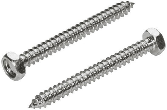 Самонарезающий винт с шестигранной головкой DIN 7976 из нержавеющей стали позиционируется как саморез для листового металла и используется для работы с мягкой сталью и алюминием. Его целесообразно использовать в тех случаях, когда требуется приложить более высокое усилие затягивания и допускается выступающая шляпка крепежа. Шуруп-саморез по металлу имеет стержень с полной мелкой резьбой, который при ввинчивании в низкоуглеродистую сталь и алюминиевые сплавы нарезает канавку в установочном отверстии без деформации собственной резьбы. Острие на конце избавляет от необходимости сверления стали толщиной до 1,0 мм. Внешний шестигранник обеспечивает увеличенный момент затяжки и исключает проскальзывание инструмента при установке. Изготовлен из немагнитной аустенитной стали А2, которая сочетает в себе высокую прочность и пластичность. Нержавеющие саморезы, выполненные из данного материала, рассчитаны на длительный срок службы без следов коррозии во влажной среде.