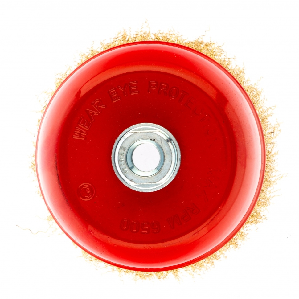 Щетка «чашка» Matrix 74606 125 мм с латунированной витой проволокой устанавливается на вал УШМ с помощью гайки М14. С ее помощью можно обработать поверхности для снятия тонкого слоя краски или лака, удаления ржавчины и загрязнений. Чашкой диаметром 125 мм можно быстро обработать большие площади при рекомендованных оборотах 6500 об/мин. Преимущества Долговечность — щетина выполнена из высококачественной стальной проволоки. Универсальность — набор подходит для любых твердых поверхностей: древесины, металла, пластика и т.д. Аккуратная работа — щетки с витой щетиной позволяют снять тонкий слой материала. Коррозионная стойкость — корпус щетки покрыт защитной эмалью, щетина латунирована.