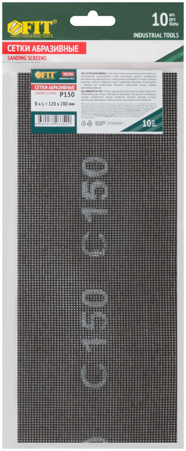 Набор 10 шт. Водостойкие. 120 х 280 мм. Для обработки гипсокартона, выравнивания сухой штукатурки, ручного шлифования металлических поверхностей, а также прочих материалов. Сетчатая структура позволяет избегать забивания ячеек продуктами обработки. Материал: нейлон, карбид-кремниевый абразив. Упаковка: полипропиленовый пакет с картонным подвесом.