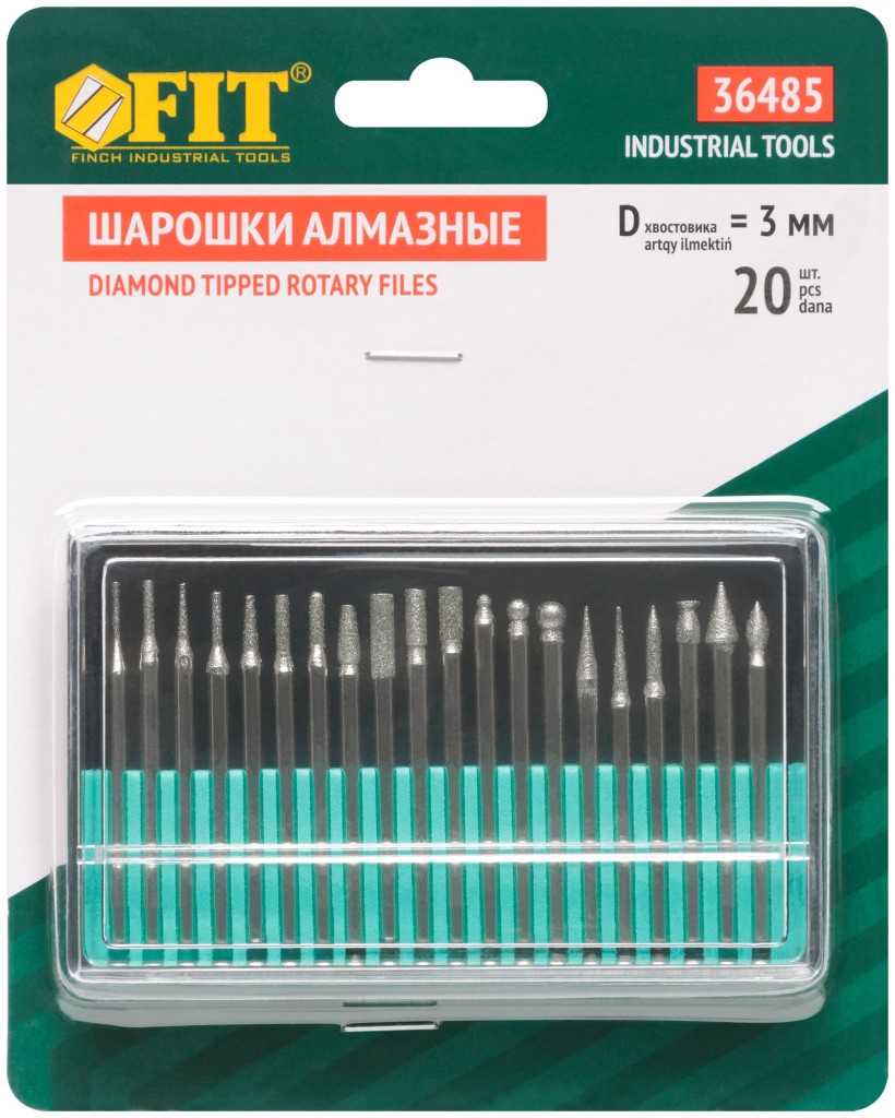 Шарошки усилен.сталь с алмаз.напылен., штифт диам. 3 мм, 20шт.
