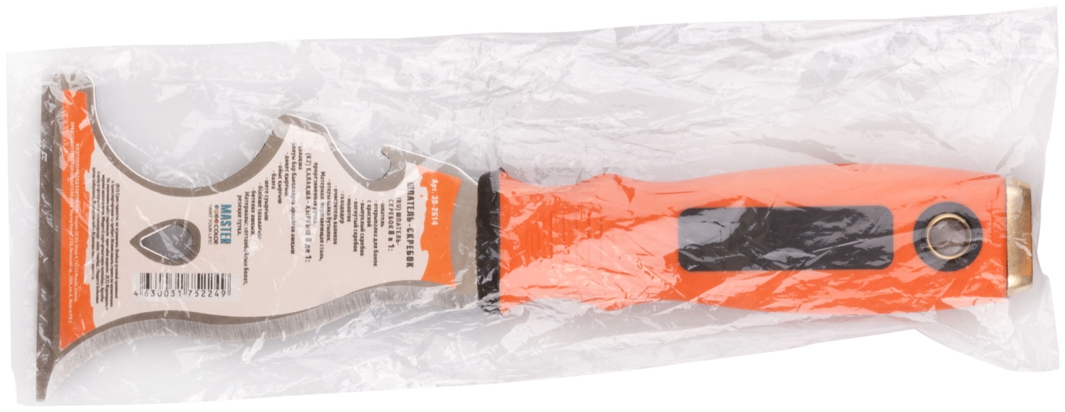 Шпатель-скребок, нержавеющая сталь, 2-К ручка, многофункц.8-в-1, 75 мм