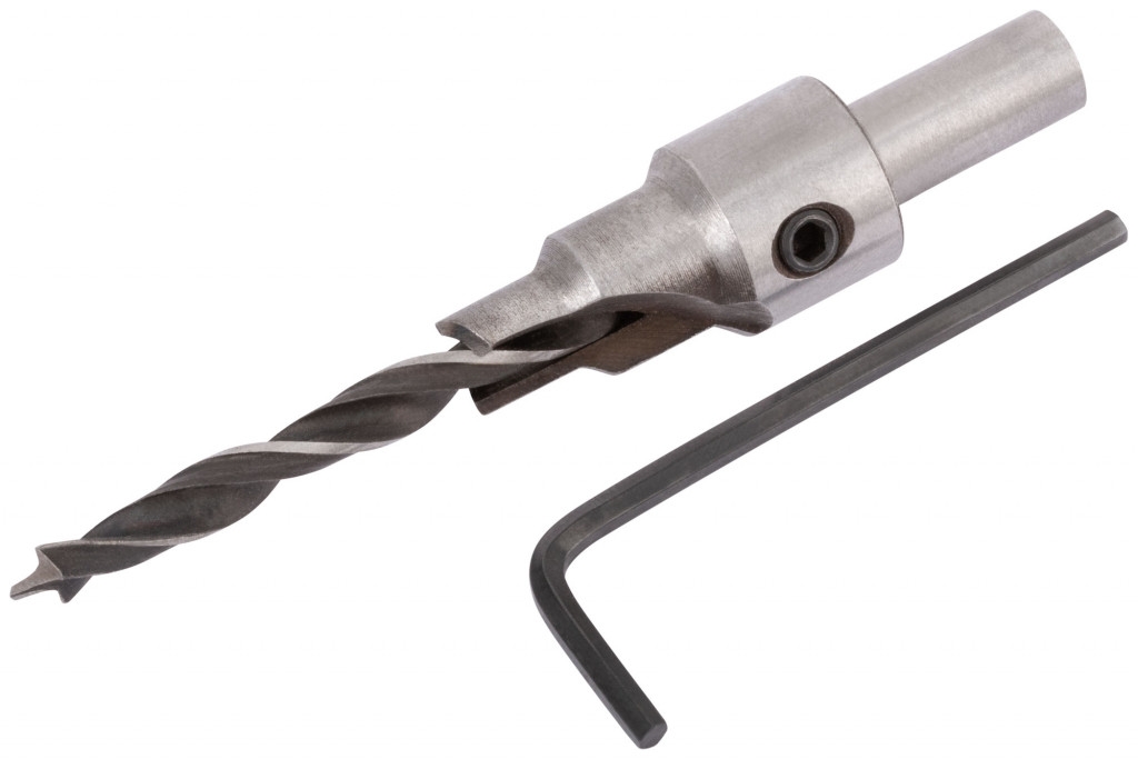 Для сверления отверстий в древесине под ме-бельную стяжку «конфирмат». В комплекте: сверло, держатель сверла с зенкером, ключ шестигранный. Материал: инструментальная сталь. Упаковка: блистер.