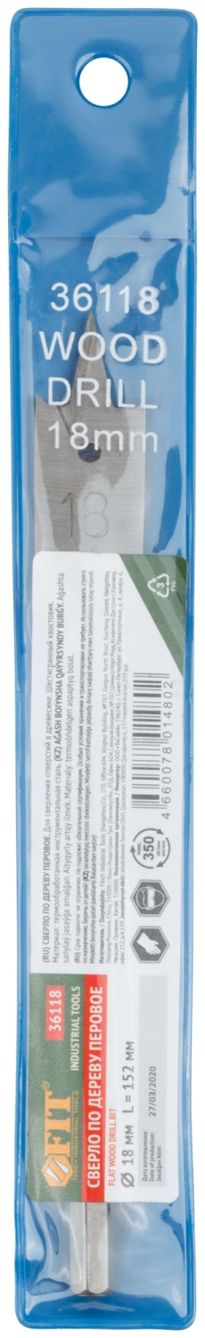 Перовое, L=152 мм, шестигранный хвостовик. Материал: инструментальная сталь. Упаковка: п/э пакет.