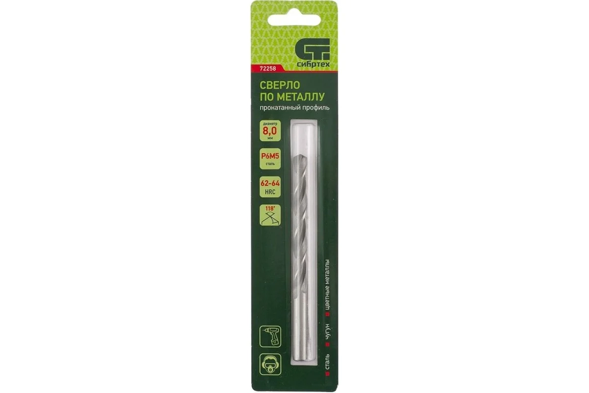 Сверло по металлу 8,0 мм Р6М5 Сибртех