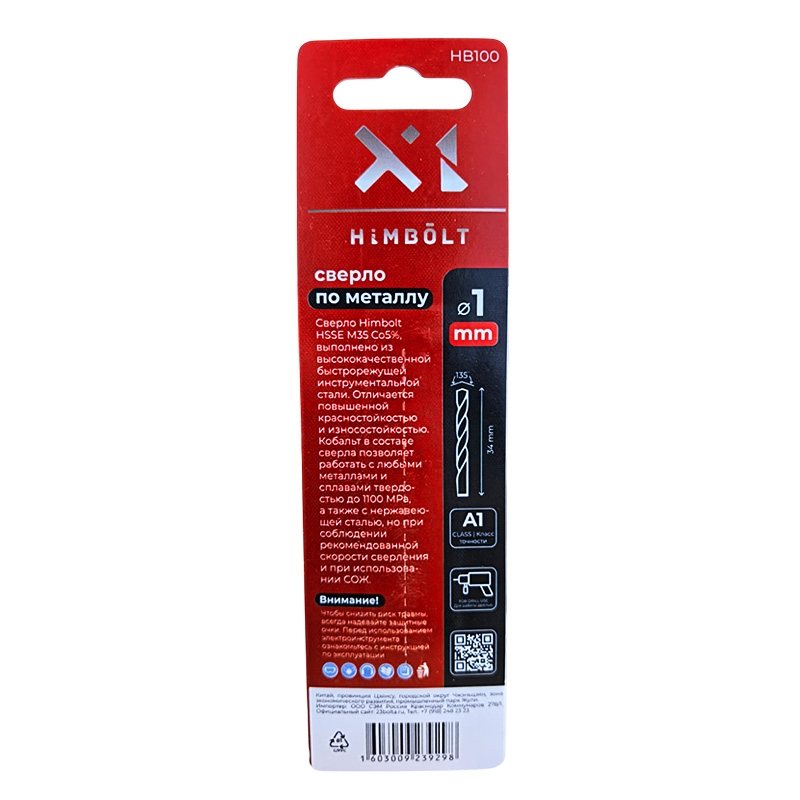 Сверло по металлу с кобальтом 5% P6M5K5 1,0 мм HIMBOLT 2 шт. блистер выполнено из высококачественной быстрорежущей инструментальной стали. Отличается повышенной красностойкостью и износостокойстью. Кобальт в составе сверла позволяет работать с любыми металлами и сплавами твердостью до 1100 МРА, а также с нержавеющей сталью, но при соблюдении рекомендованной скорости сверления и при использовании СОЖ.