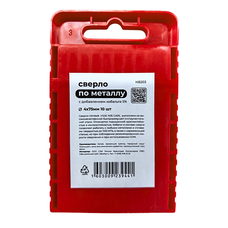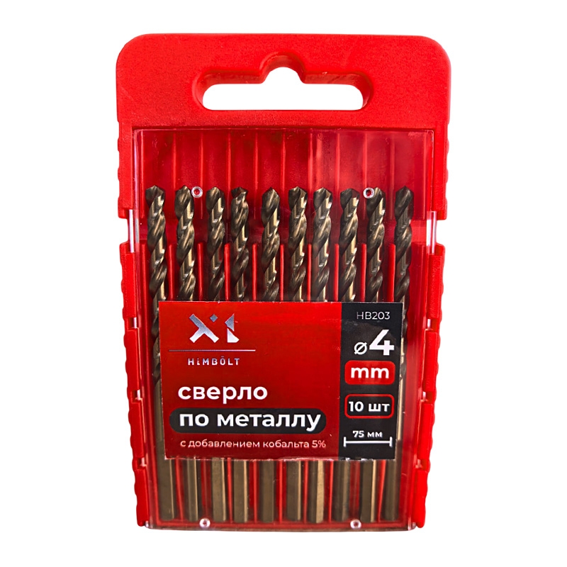 Сверло по металлу с кобальтом 5% P6M5K5 4,0 мм HIMBOLT 10 шт.пластиковый бокс