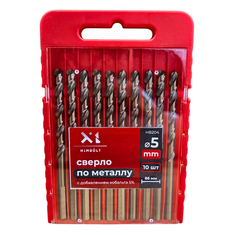 Сверло по металлу с кобальтом 5% P6M5K5 5,0 мм HIMBOLT 10 шт.пластиковый бокс