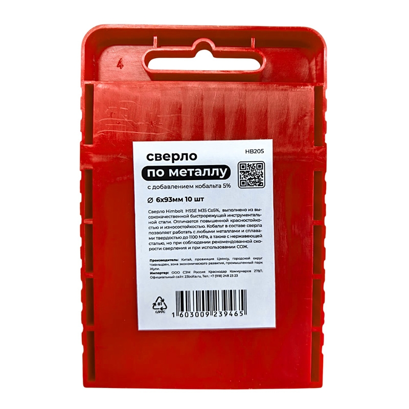 Сверло по металлу с кобальтом 5% P6M5K5 6,0 мм HIMBOLT 10 шт.пластиковый бокс