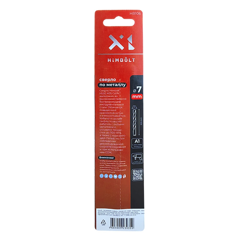Сверло по металлу с кобальтом 5% P6M5K5 7,0 мм HIMBOLT 2 шт.блистер выполнено из высококачественной быстрорежущей инструментальной стали. Отличается повышенной красностойкостью и износостокойстью. Кобальт в составе сверла позволяет работать с любыми металлами и сплавами твердостью до 1100 МРА, а также с нержавеющей сталью, но при соблюдении рекомендованной скорости сверления и при использовании СОЖ.