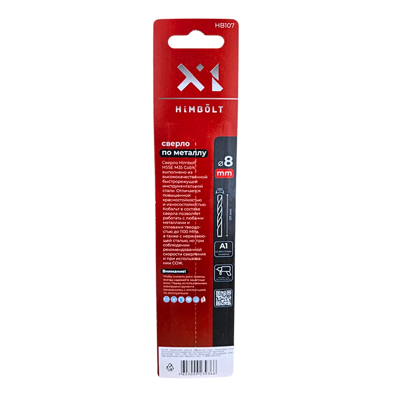 Сверло по металлу с кобальтом 5% P6M5K5 8,0 мм HIMBOLT 1 шт.блистер выполнено из высококачественной быстрорежущей инструментальной стали. Отличается повышенной красностойкостью и износостокойстью. Кобальт в составе сверла позволяет работать с любыми металлами и сплавами твердостью до 1100 МРА, а также с нержавеющей сталью, но при соблюдении рекомендованной скорости сверления и при использовании СОЖ.
