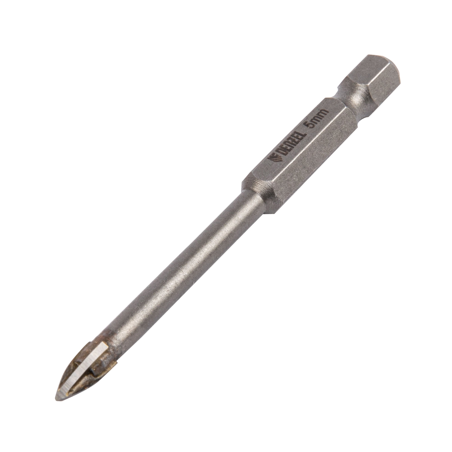Сверло по плитке керамической 5мм, крестов.пластин.,шестигр.хвостов. Denzel
