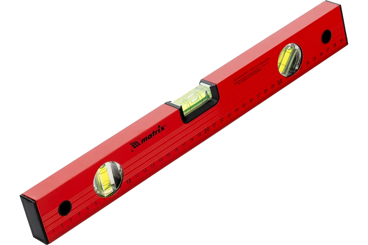 Уровень алюминиевый красный линейка 3 глазка 400 мм Matrix