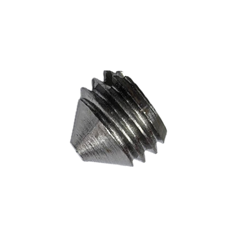 Стопорный винт с коническим концом и прямым шлицем предназначен для создания соединений, которые не работают на растяжение. Он широко используется в машиностроении и приборостроении для фиксации шестерёнок, подшипников, колец, втулок на валах.