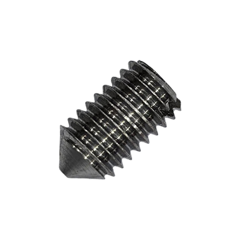 Установочный острый винт DIN 553 (ISO 7434) — это полнорезьбовой винт без головки с коническим концом и шлицем на торце под плоскую отвёртку. Он предназначен для скрепления элементов конструкции и их надёжной фиксации друг относительно друга. Винт обладает высокой вращающей и осевой удерживающей способностью.