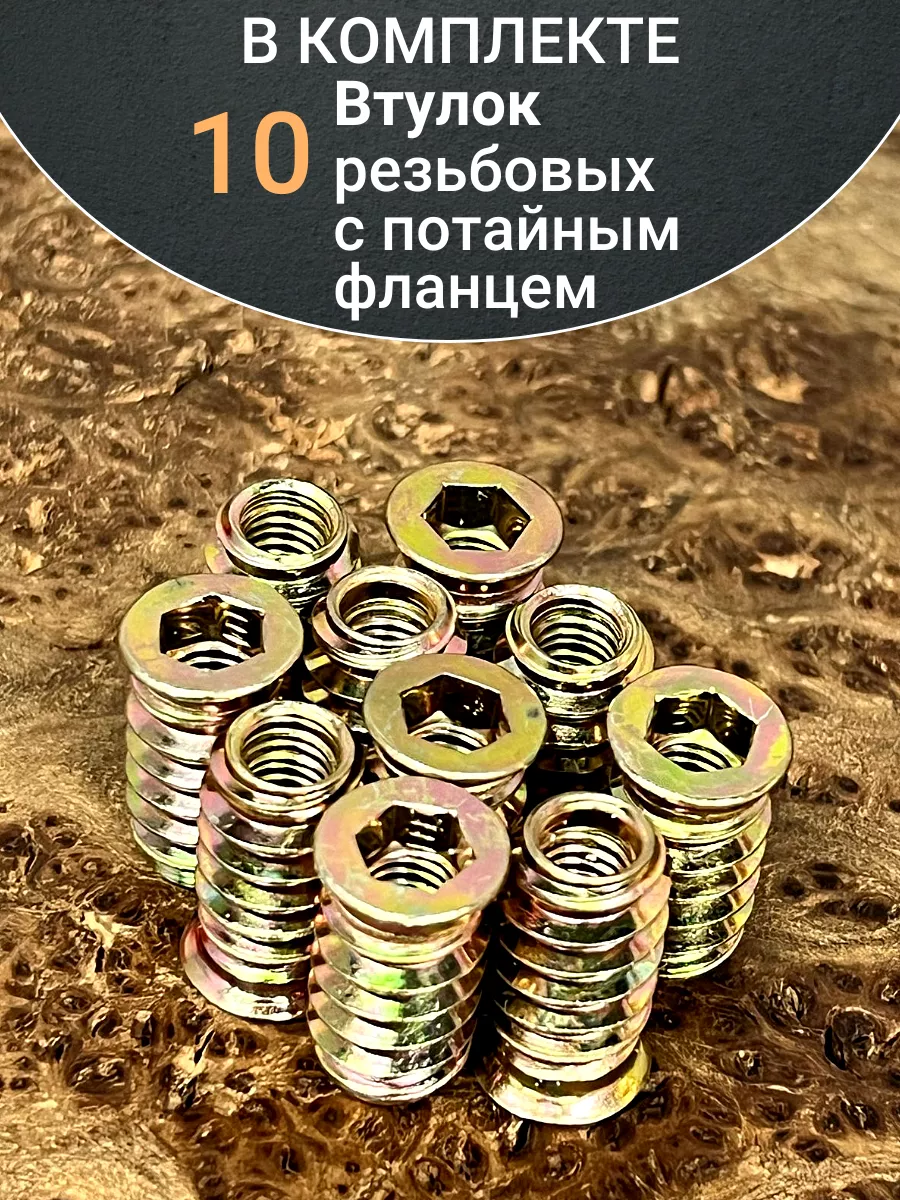 Втулка резьбовая М8х12,5х25 с потайным фланцем ЖЦ, 10 шт.