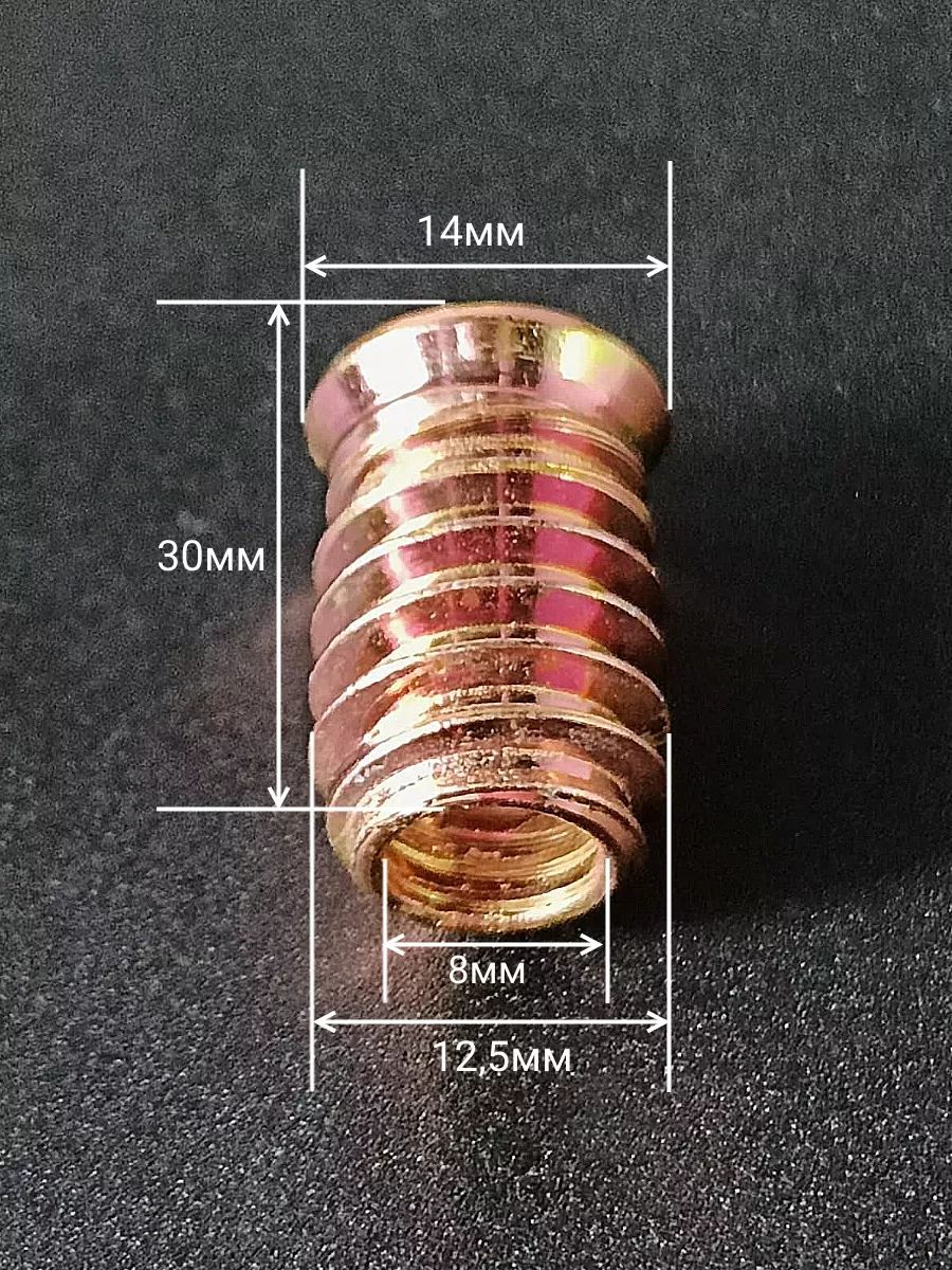 Втулка резьбовая М8х12,5х30 с потайным фланцем ЖЦ, 10 шт.
