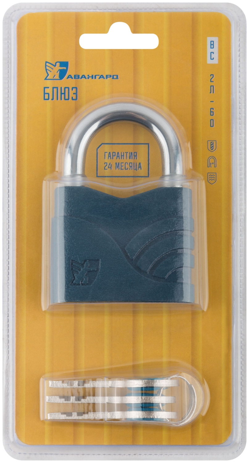 Замок навесной Блюз синий 60х48 мм стальная дужка 9 мм (2758)