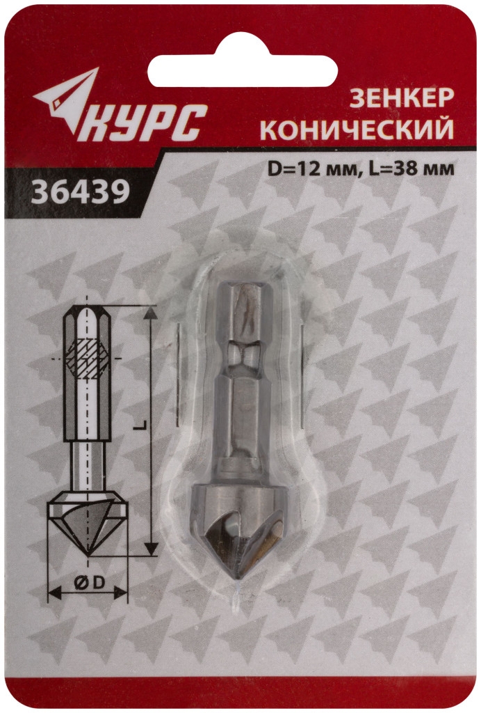 | Зенкер конический, хвостовик под биту, 12 мм | 36439 | 1 шт. |